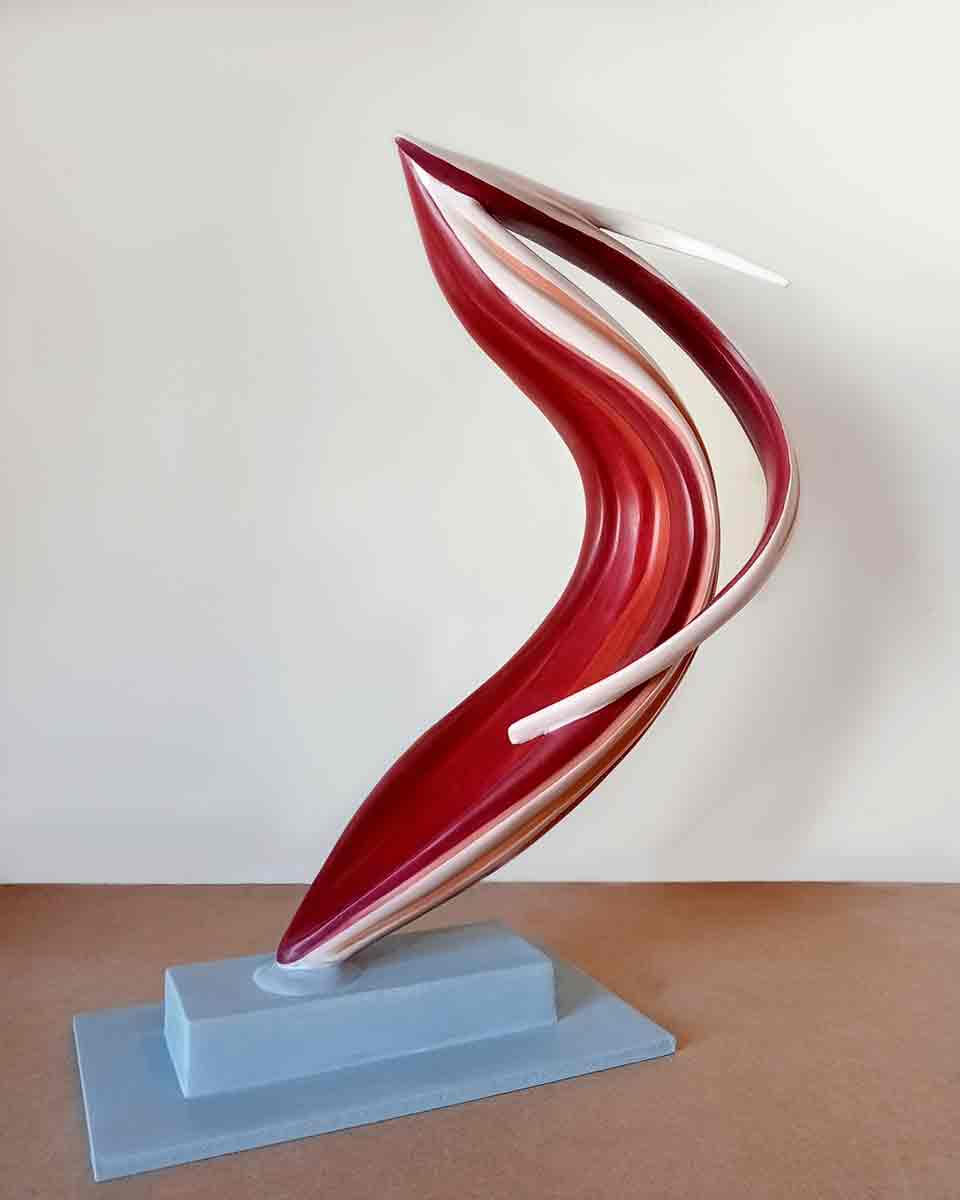 EN↓ The Surrender was conceived before the pandemic but materialized during it as the artist's first piece in resin. Its completion coincided with a period of loss and transformation, revealing the timeless character of certain forms that seem to await the precise moment to embody their meaning.Composed of three long, curved bodies, the sculpture evokes a suspended wave or a gesture arching backward. This apparent inclination to retreat gives rise to its name: a conscious surrender to the flow of life. Far from signifying defeat, the movement suggests trust in the invisible processes that accompany losses and closures, understood here as transition rather than ending.