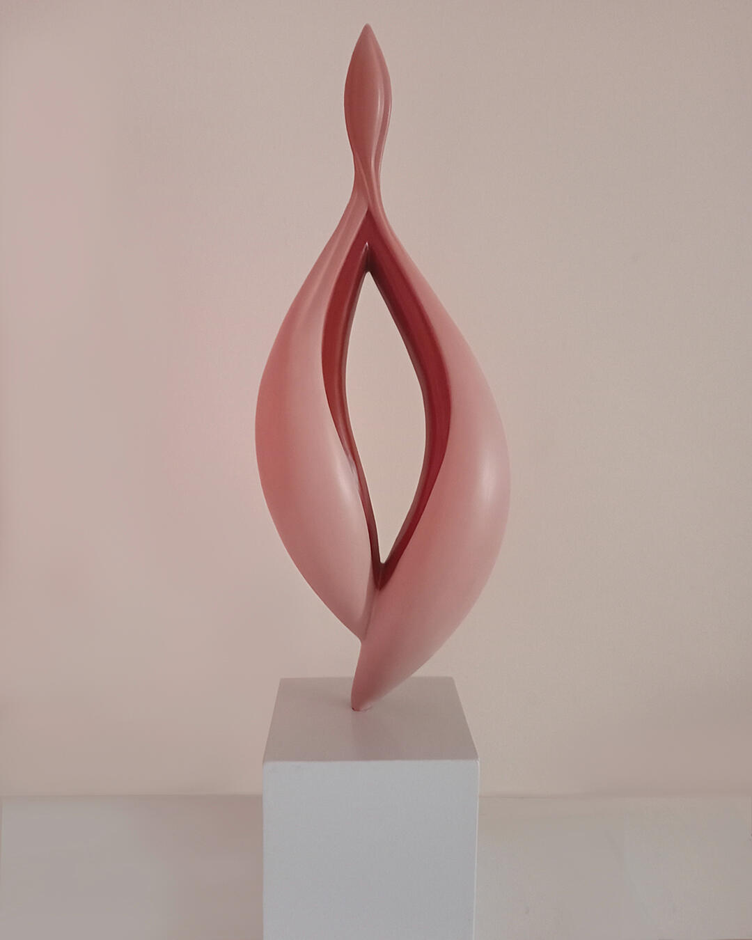 EN↓ Love Button embodies the moment before blossoming: the contained promise before full opening. The form, resembling a bud in gentle tension, alludes to the creative potential of feminine energy. Its curved petals may also evoke the presence of the tongue as a gesture of exploration and surrender, placing the work in the territory of intimate encounter.The piece addresses feminine pleasure in its phase of gradual expansion, particularly that moment before climax where sensitivity intensifies and bodily awareness amplifies. The exterior pink softens the symbolic weight, while the organic rhythm of the forms suggests fluidity, desire, and reciprocity. Rather than representing the act, the work captures the vibration of pleasure that precedes that culminating instant, elevating it into a conscious and creative experience.