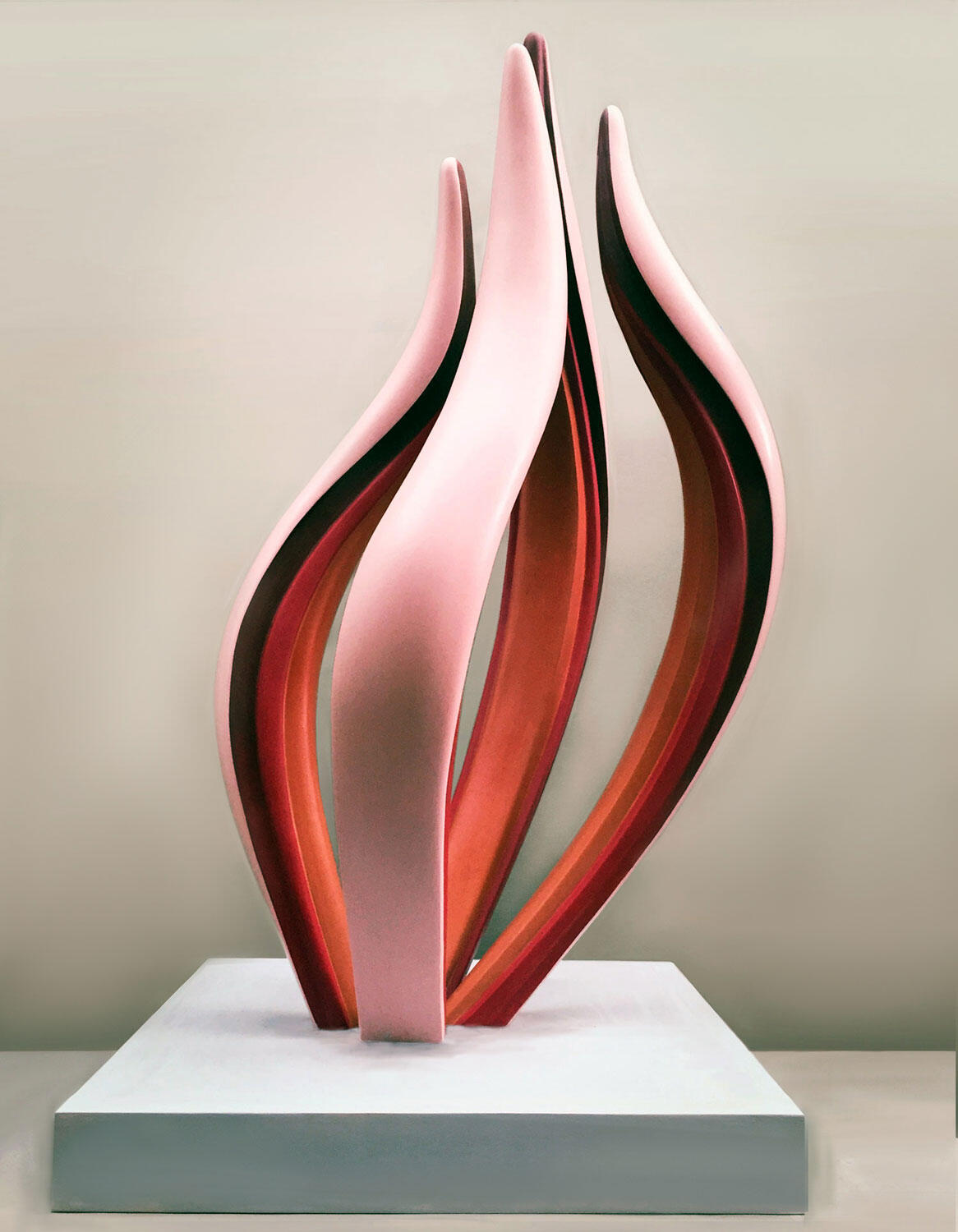 EN↓ Sound of Siren takes as its starting point the mythological figure of the siren: half woman, half marine creature, symbol of attraction, mystery, and inspiration. The sculpture is composed of four elongated, organic bodies that, curving together, evoke the sinuous silhouette of a feminine hip emerging from the water.