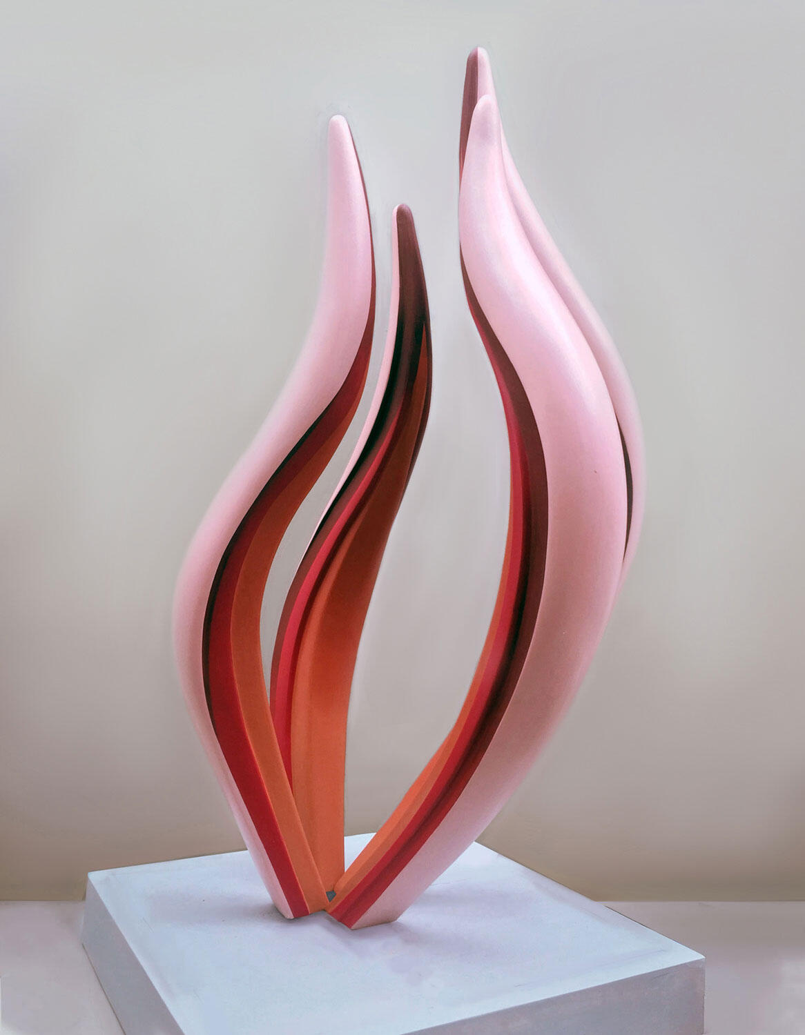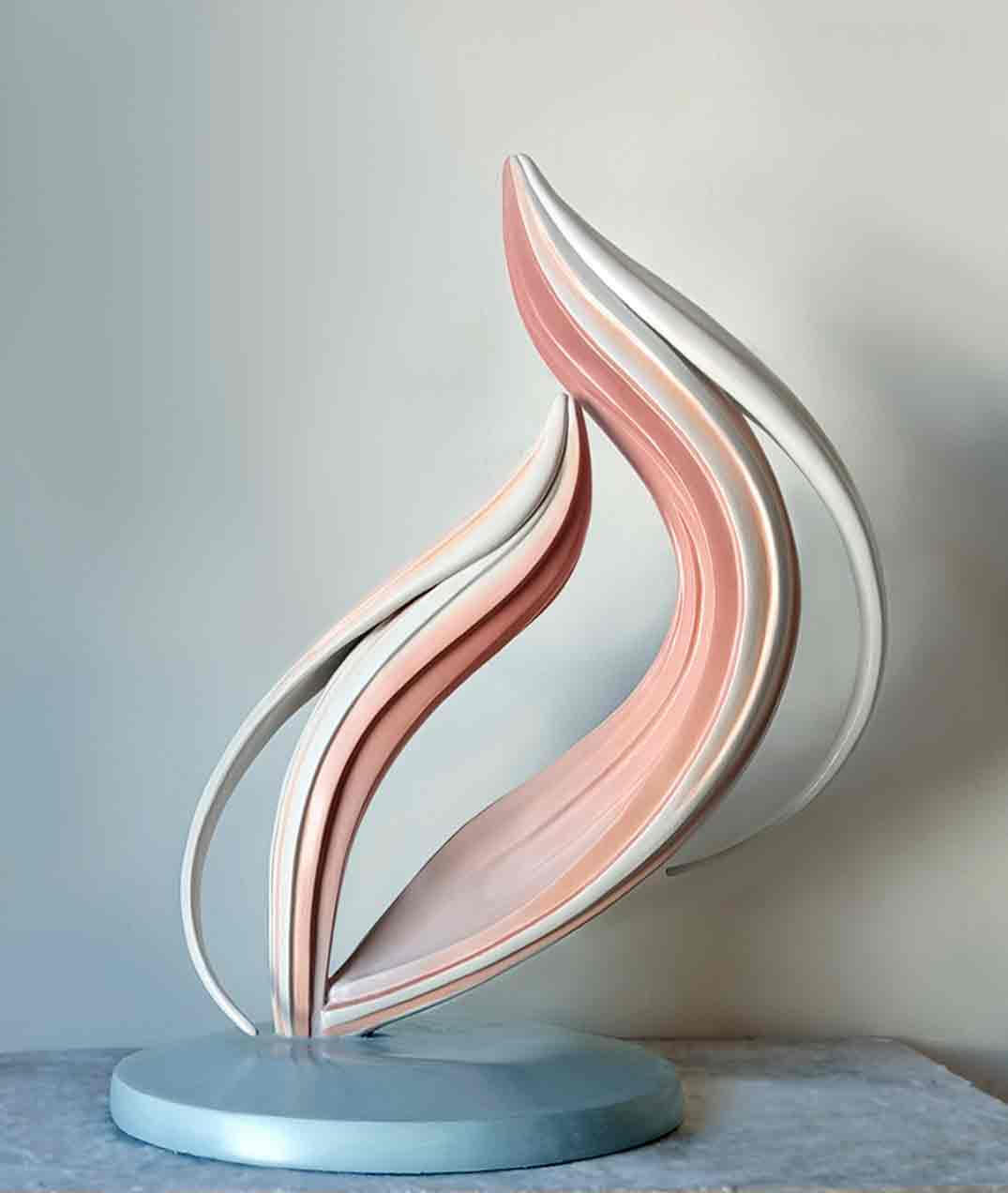 EN↓ Sound of Siren takes as its starting point the mythological figure of the siren: half woman, half marine creature, symbol of attraction, mystery, and inspiration. The sculpture is composed of four elongated, organic bodies that, curving together, evoke the sinuous silhouette of a feminine hip emerging from the water.